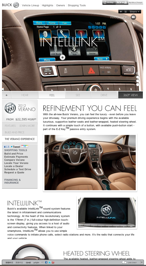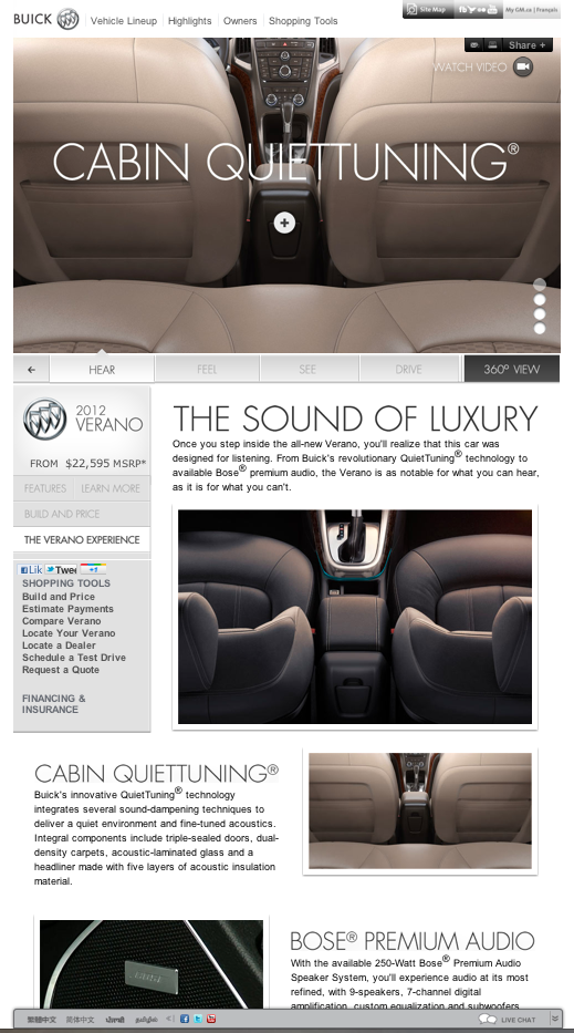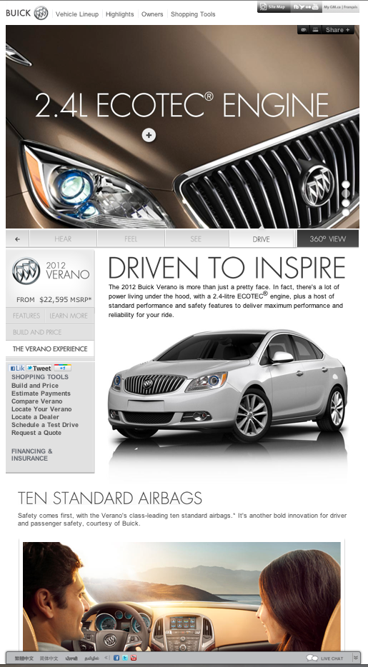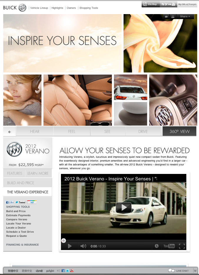 Campaign site and banners for Buick's Inspire Your Senses campaign launch